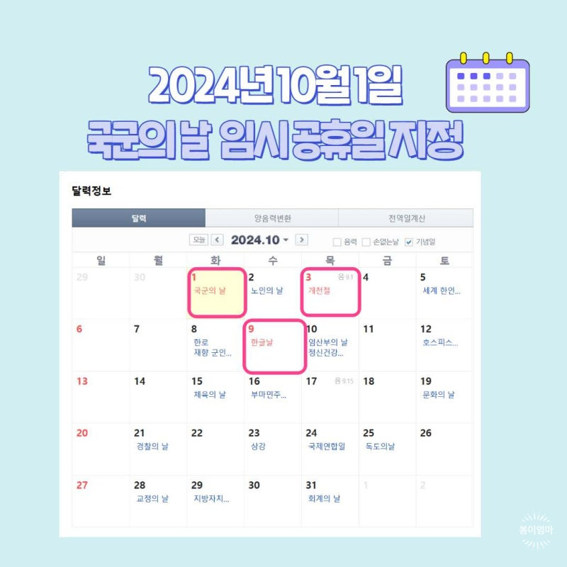 #2024년연휴 #국군의날 #임시공휴일 #가족과함께 #즐거운시간 #공휴일계획 #가을여행 #소중한시간